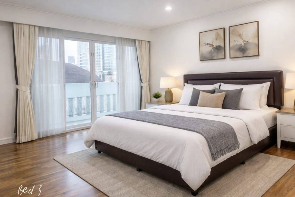 Bright Three Bedrooms with Nice Balconies in Sukhumvit Road, Just 13 minutes from the Phrom Phong.