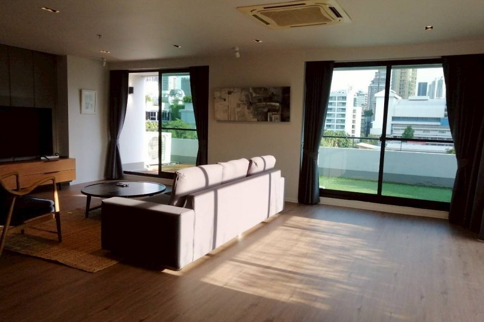 Large Balcony with Private Garden, Penthouse 3+1 Bedrooms Near BTS Asoke and BTS Phrom Phong, Close to Shopping Centers, Restaurants and Hospitals.