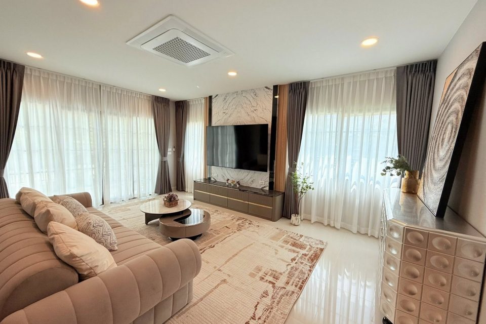 เครื่องใช้ไฟฟ้าและสิ่งอำนวยความสะดวก: แอร์ 6 เครื่อง (แอร์ติดผนัง 5 ตัว + แอร์ 4 ทิศทาง 1 ตัว), เครื่องซักผ้าและอบผ้า, ไมโครเวฟ, เครื่องดูดควัน + เตาแก๊ส 2 หัว (ไม่รวมถังแก๊ส), เครื่องทำน้ำอุ่นและน้ำร้อนครบทุกห้อง, ตู้เย็นขนาดใหญ่, ทีวี 75 นิ้ว + ทีวี 65 นิ้ว, ผ้าม่านทั้งหลัง