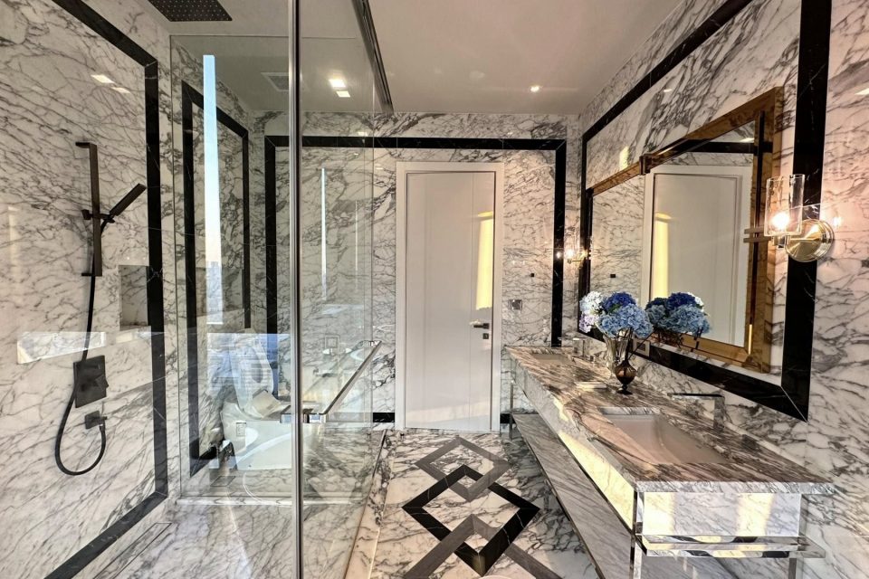-Top-grade materials including Italian Palissandro marble and Low-E insulated glass