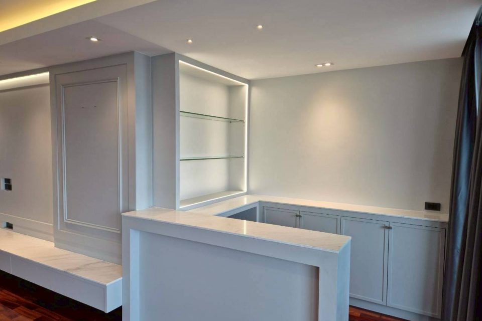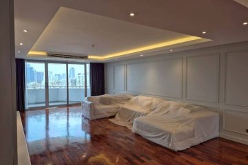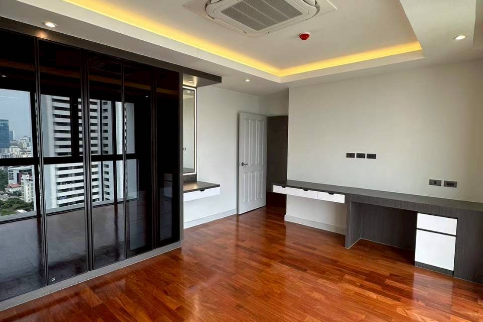 4 Bedrooms, 3 Bathrooms, 1 Living room, 1 Maid Room, 1 Storage Room , Size 300 Sq.m, Located on 20+ Floors, Semi-Furnished, Large balconies with excellent panorama view.