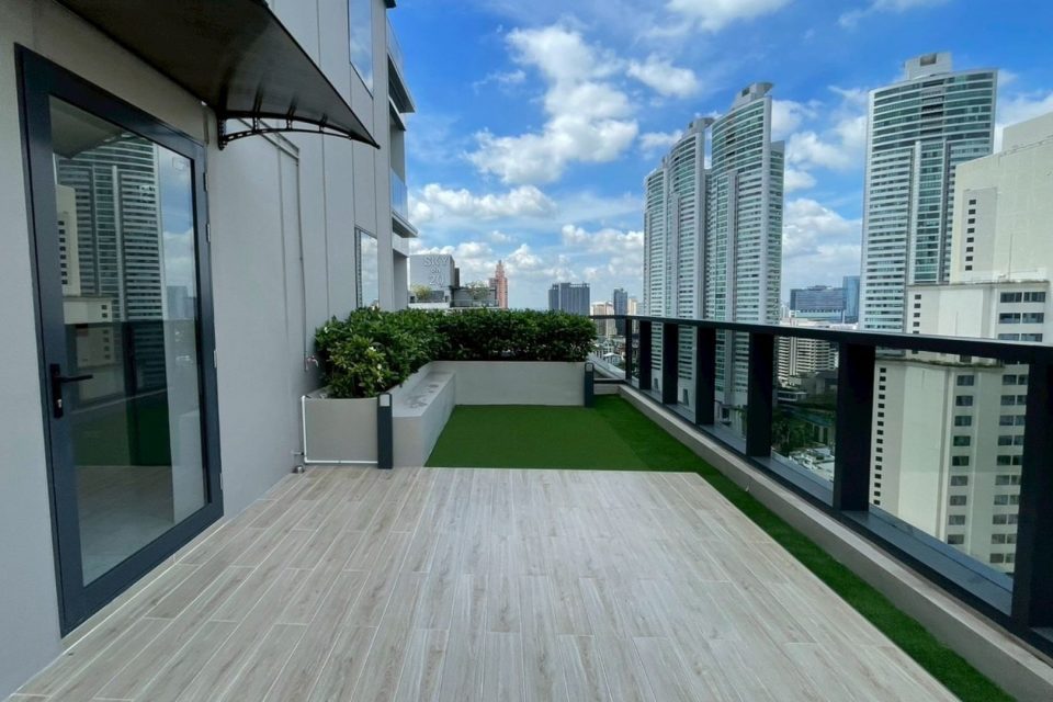 Private Sky Garden Balcony with City View 4-Bedrooms Service Apartment Near Asoke and Phrom Phong BTS Station.